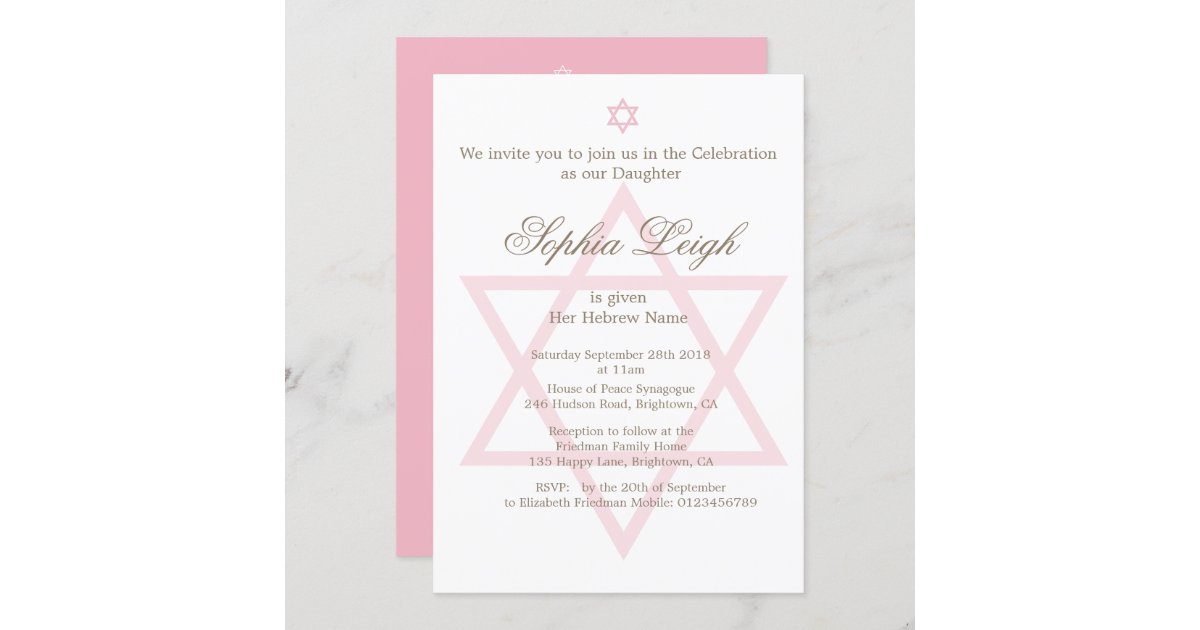 Baby Girl Naming Ceremony Pink Hebrew Jewish Invitation Zazzle Com Jewish Invitation Invitations Naming Ceremony